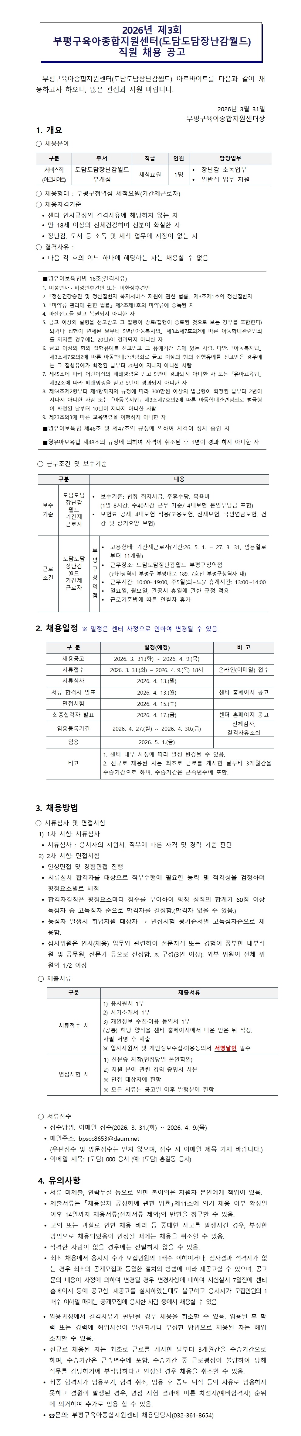 ºÙÀÓ1.2026³â Á¦3ȸ Á÷¿øÃ¤¿ë °ø°í.hwp ºÙÀÓ2. ÀÀ½Ã¿ø¼ ¹× ÀÚ±â¼Ò°³¼.hwp |