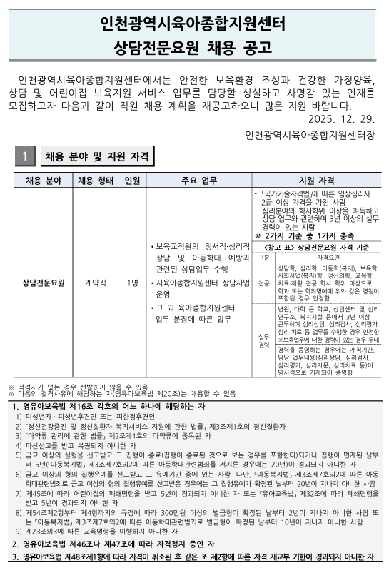 ºÙÀÓ1)2026³â ÀÎõ±¤¿ª½ÃÀ°¾ÆÁ¾ÇÕÁö¿ø¼¾ÅÍ »ó´ãÀü¹®¿ä¿ø ä¿ë Àç°ø°í.pdf ºÙÀÓ2)2026³â Á÷¿ø(»ó´ãÀü¹®¿ä¿ø) ä¿ë Áö¿ø¼ ¾ç½Ä.hwp |