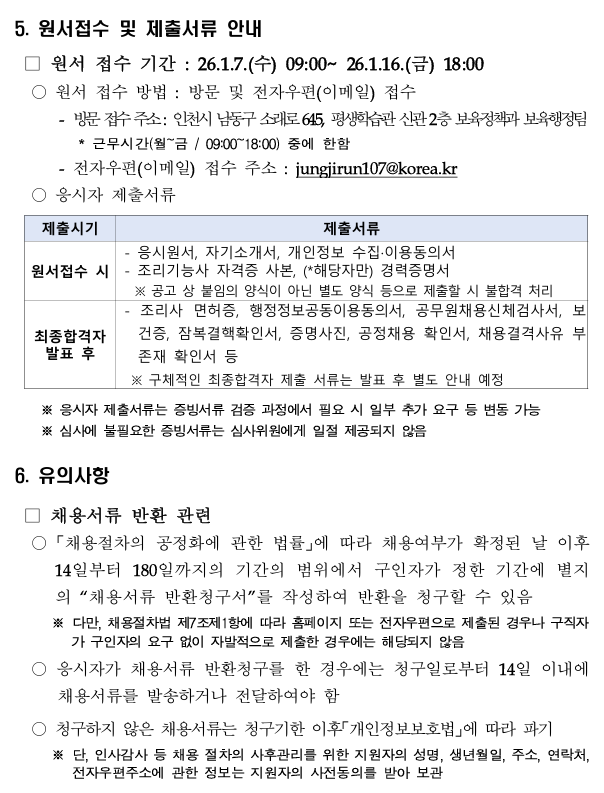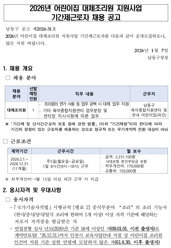 | ³²µ¿±¸]2026³â ´ëüÁ¶¸®¿ø ±â°£Á¦±Ù·ÎÀÚ Ã¤¿ë°ø°í | |||||