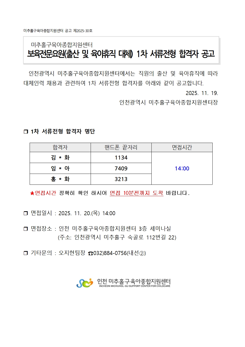 | [º»¼¾ÅÍ] Á÷¿øÃ¤¿ë(º¸À°Àü¹®¿ä¿ø: Ãâ»ê ¹× À°¾ÆÈÞÁ÷ ´ëü) 1Â÷ ¼·ùÀüÇü ÇÕ°ÝÀÚ °ø°í | |||||