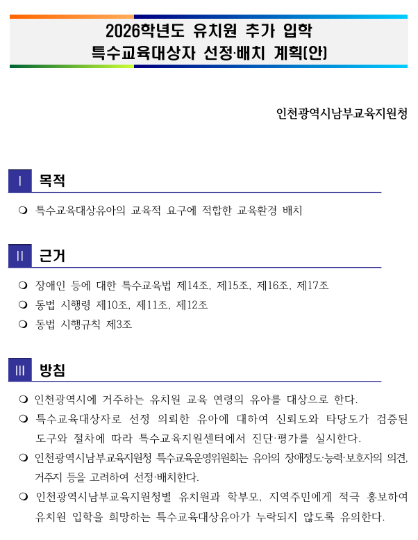 | ±³À°Áö¿øÃ»]2026Çг⵵ À¯Ä¡¿ø Ãß°¡ ÀÔÇРƯ¼ö±³À°´ë»óÀÚ ¼±Á¤ ¹èÄ¡ °èȹ[¾È] ¼öÁ¤º» | |||||
