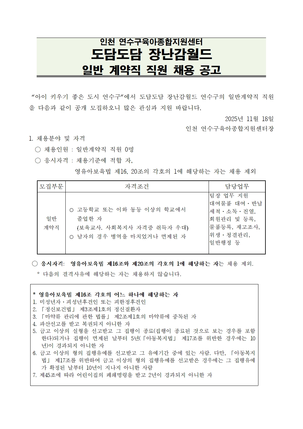 | ¿¬¼ö±¸¼¾ÅÍ]µµ´ãµµ´ã Àå³°¨¿ùµå ÀÏ¹Ý °è¾àÁ÷ Á÷¿ø ä¿ë °ø°í | |||||