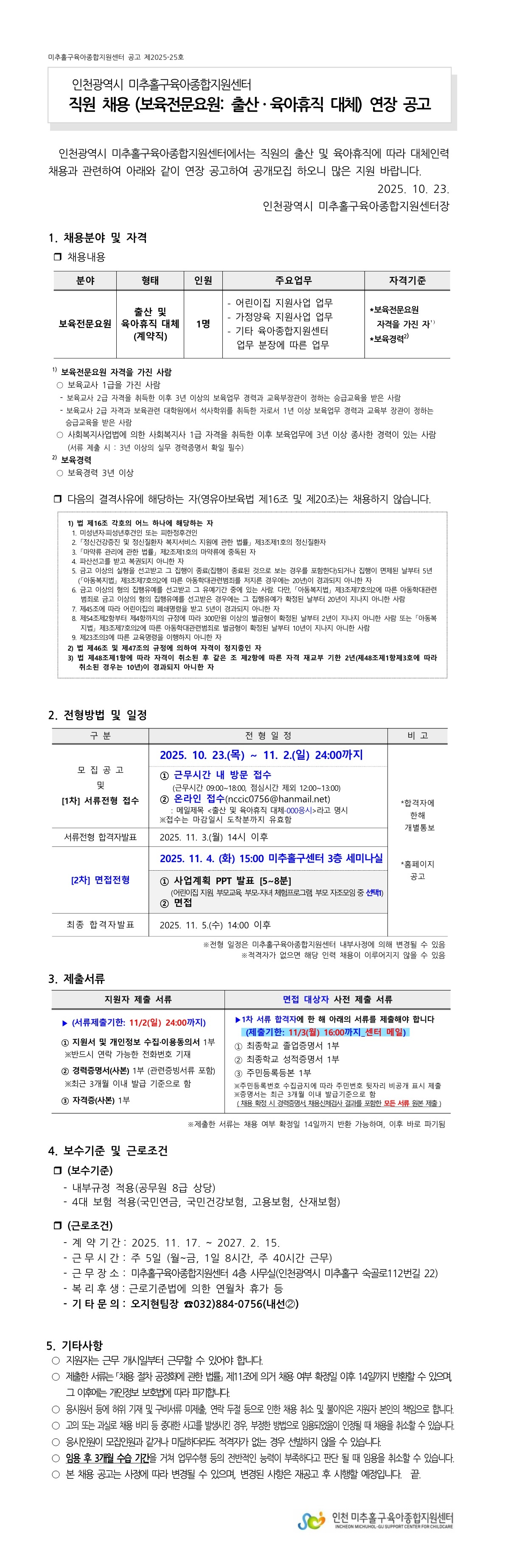 | [º»¼¾ÅÍ_ä¿ë] Á÷¿øÃ¤¿ë(º¸À°Àü¹®¿ä¿ø: Ãâ»ê ¹× À°¾ÆÈÞÁ÷ ´ëü) ¿¬Àå °ø°í | |||||