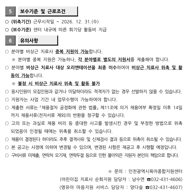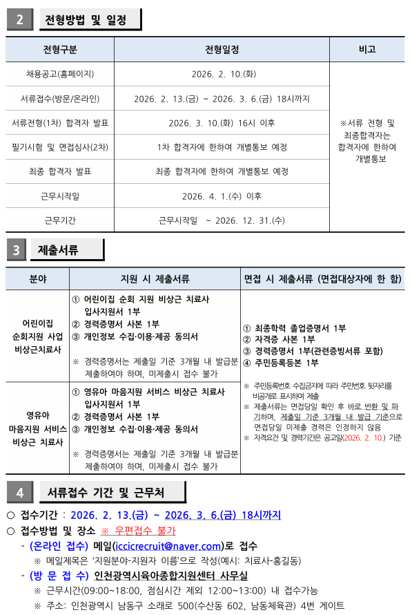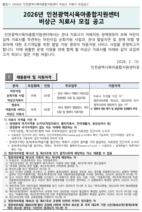 [ºÙÀÓ1] 2026³â ÀÎõ±¤¿ª½ÃÀ°¾ÆÁ¾ÇÕÁö¿ø¼¾ÅÍ ¾î¸°ÀÌÁý Ä¡·á»ç ¼øÈ¸Áö¿ø »ç¾÷ ½Ã°£Á¦ °ü¸®ÀÚ Ã¤¿ë °ø°í.pdf [ºÙÀÓ2,3] 2026³â ¾î¸°ÀÌÁý Ä¡·á»ç ¼øÈ¸Áö¿ø »ç¾÷ ½Ã°£Á¦ °ü¸®ÀÚ Áö¿ø ¼·ù ¹× °³ÀÎÁ¤º¸ ¼öÁý¡¤ÀÌ¿ë µ¿ÀǼ.hwp |