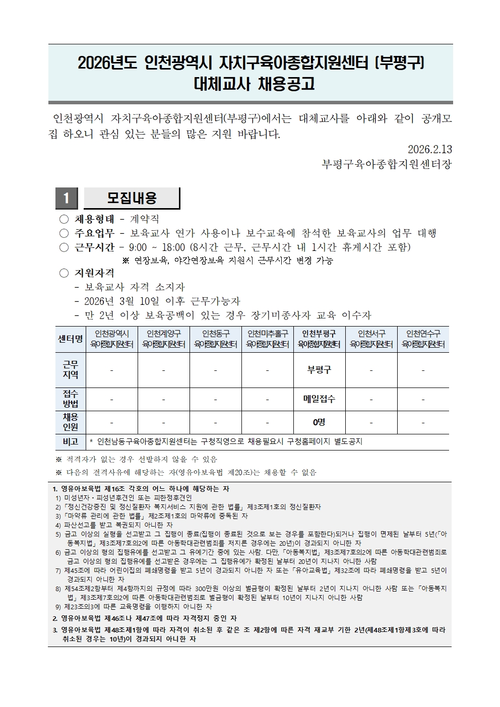 [º»¼¾ÅÍ]¡¸2026³âµµ ´ëü±³»ç Áö¿ø»ç¾÷¡¹ ÀηÂä¿ë °ø°í¹®.pdf ºÙÀÓ2) ÀÎõºÎÆò±¸À°¾ÆÁ¾ÇÕÁö¿ø¼¾ÅÍ ´ëü±³»çÁö¿ø¼ ¹× °³ÀÎÁ¤º¸µ¿ÀǼ.hwp |