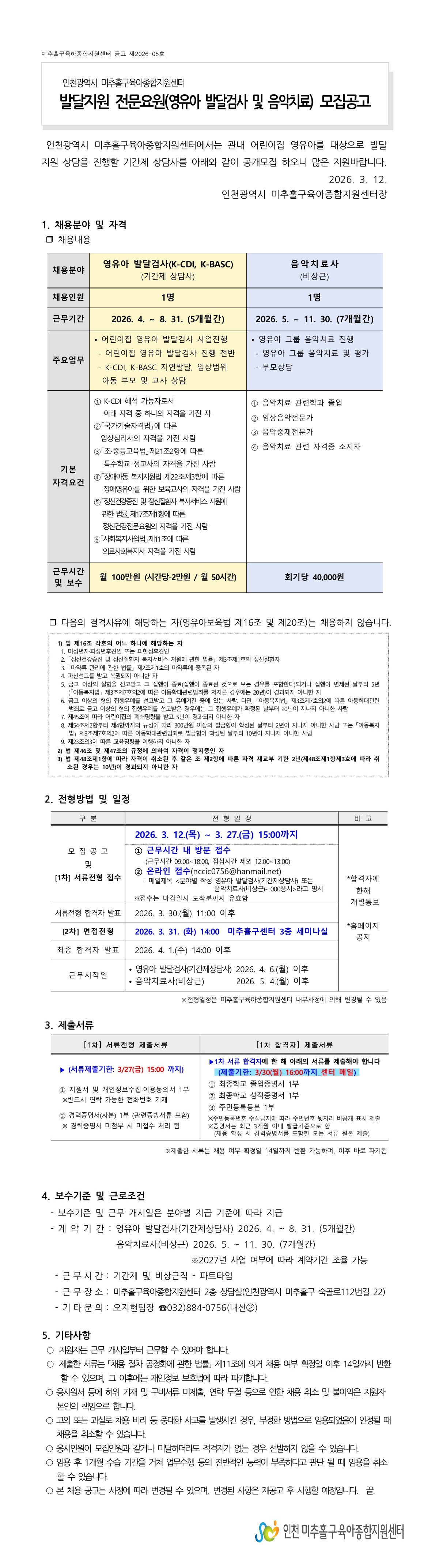 | [º»¼¾ÅÍ] ¹ß´ÞÁö¿ø Àü¹®¿ä¿ø(¿µÀ¯¾Æ ¹ß´Þ°Ë»ç ¹× À½¾ÇÄ¡·á) ¸ðÁý°ø°í | |||||