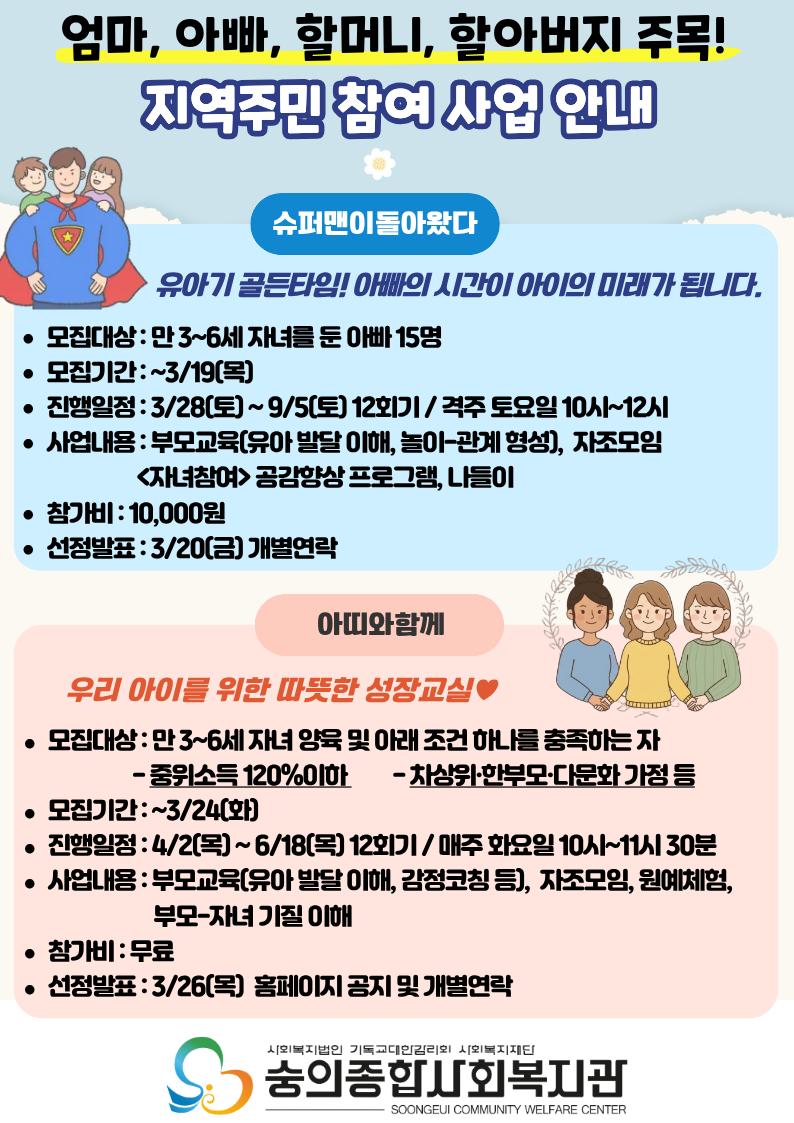 | ¼þÀÇÁ¾ÇÕ»çȸº¹Áö°ü]¾ö¸¶,¾Æºü,ÇÒ¸Ó´Ï,ÇҾƹöÁö ÁÖ¸ñ Áö¿ªÁֹΠÂü¿© »ç¾÷¾È³» | |||||