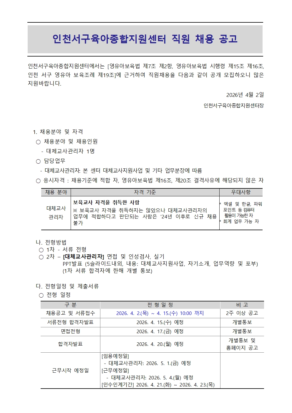 [ÀÎõ¼±¸À°¾ÆÁ¾ÇÕÁö¿ø¼¾ÅÍ] Á÷¿ø ä¿ë °ø°í.hwp 1. ÀÎõ¼±¸À°¾ÆÁ¾ÇÕÁö¿ø¼¾ÅÍ Áö¿ø¼.hwp 2. ÀÎõ¼±¸°³ÀÎÁ¤º¸ ¼öÁý.ÀÌ¿ë µ¿ÀǼ.hwp |