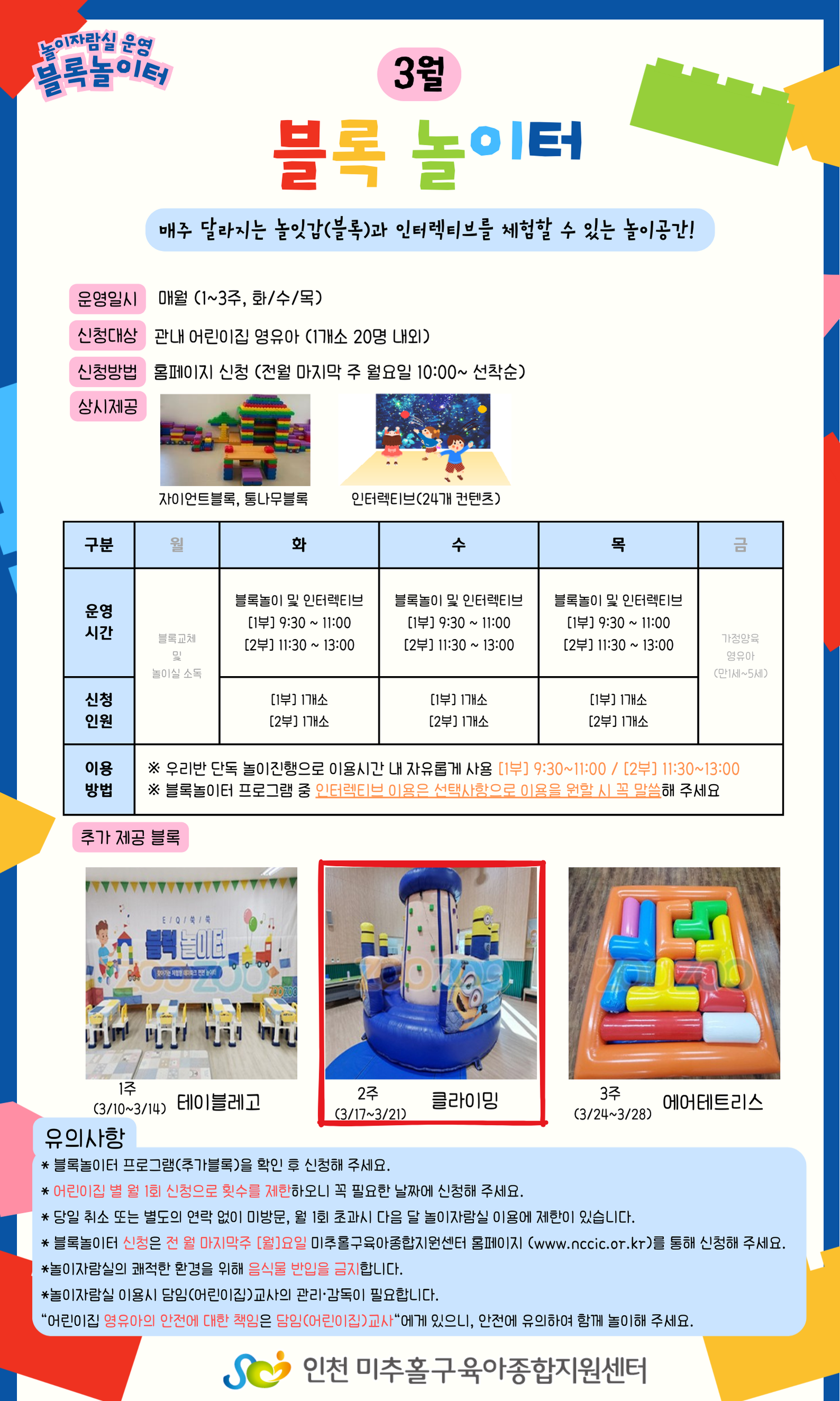 ±³À°½Åû½Ã À¯ÀÇ»çÇסÚ[1ºÎ 9:30~11:00], [2ºÎ 11:30~13:00] ½Ã°£ ²À È®ÀÎ ÈÄ ½ÅÃ»ÇØÁÖ¼¼¿ä. ¡Ú1°³¼Ò ¾î¸°ÀÌÁý ´Üµ¶»ç¿ëÇÕ´Ï´Ù. ¡Ú¹Ýµå½Ã Âü¼®ÀÚ(À̸§,ÀüȹøÈ£) ¾î¸°ÀÌÁý ¸í Á¤È®ÇÏ°Ô ±âÀÔÇØÁÖ¼¼¿ä. ¡Ú»ç¿ëÈÄ ¹Ýµå½Ã Á¤¸®Á¤µ· ÇØÁÖ¼¼¿ä. ¡ÚüÇè³îÀÌ½Ç ÀÌ¿ë½Ã "¿µÀ¯¾ÆÀÇ ¾ÈÀüÀº ´ãÀÓ±³»çÀÇ Áöµµ"°¡ ÇÊ¿äÇØ¿ä. ¡Ø¾î¸°ÀÌÁý º° ½Åû ¿ù1ȸ [Ƚ¼öÁ¦ÇÑ] ¡Ú¹®ÀÇ)¹ÌÃßȦ±¸À°¾ÆÁ¾ÇÕÁö¿ø¼¾ÅÍ ¢Ï032)884-0756 |