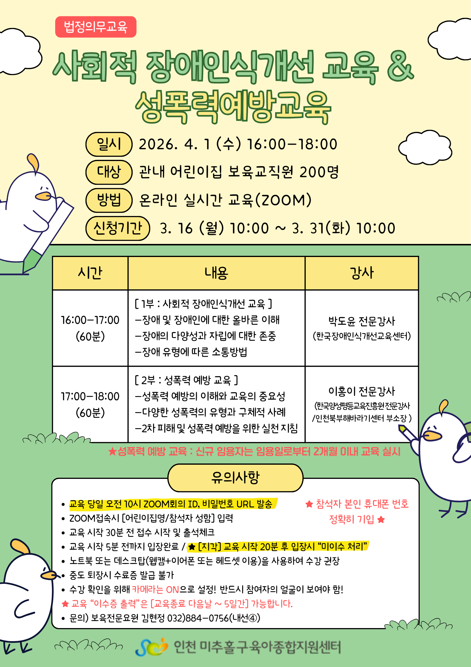 | ±³À°ÀÏ | 2026-04-01(¼ö) | ±³À°½Ã°£ | 16½Ã00ºÐ ~ 18½Ã00ºÐ |