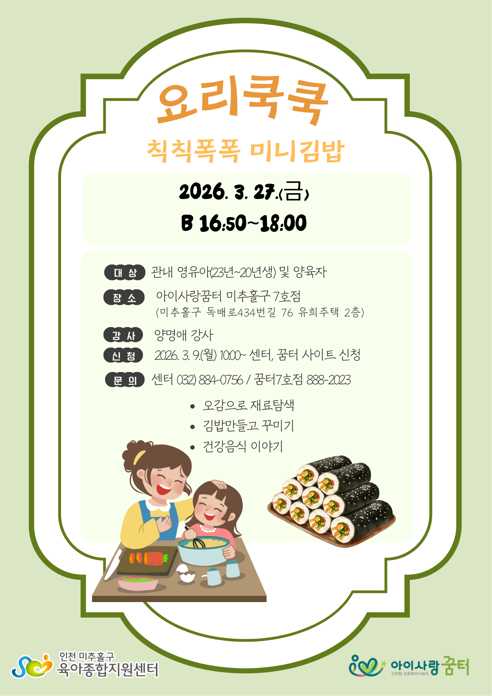 | ±³À°Àå¼Ò | ²ÞÅÍ7È£Á¡(¹ÌÃßȦ±¸) | ±³À°´ë»ó | °ü³» ¿µÀ¯¾Æ(20³â»ý~23³â»ý)¿Í º¸È£ÀÚ |